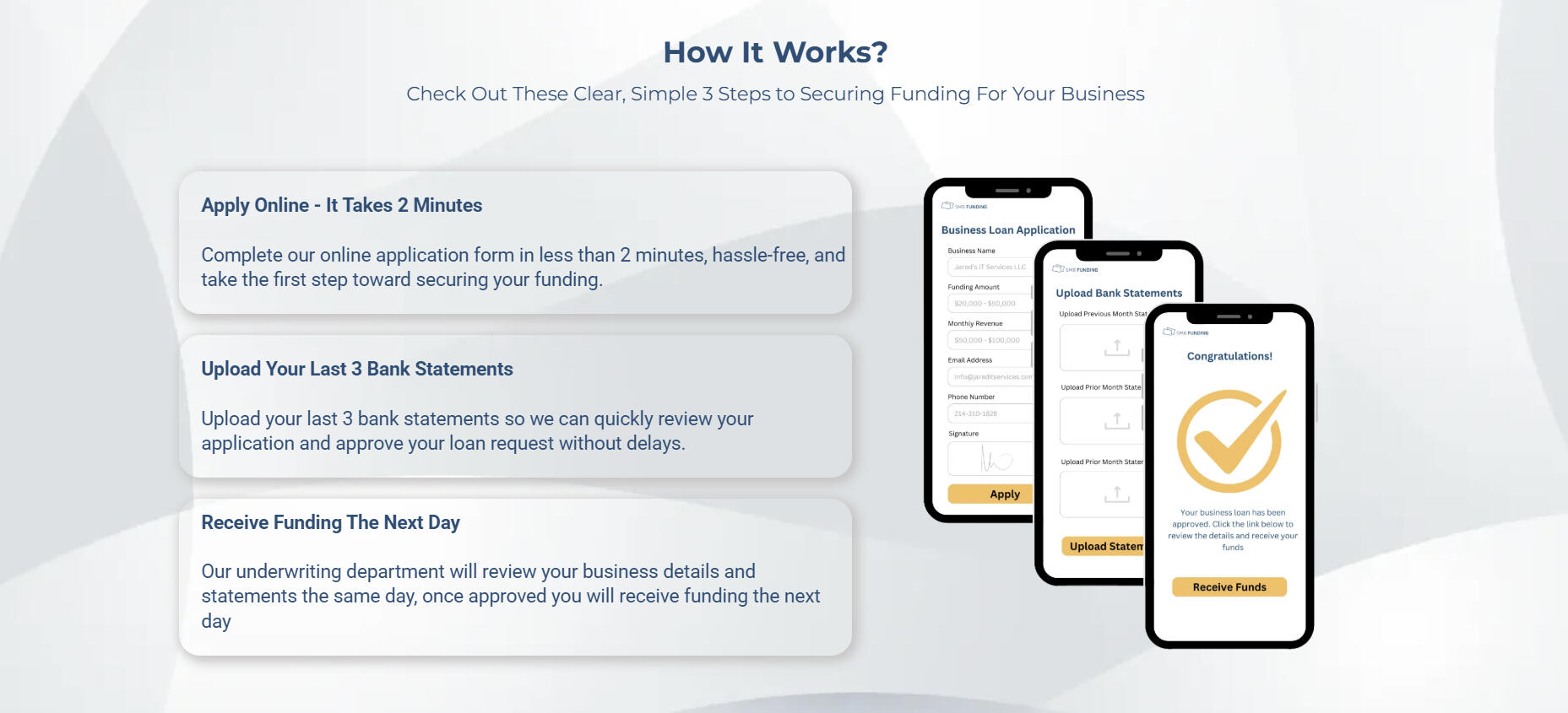 To qualify, you’ll need to have been in business for at least 6 months, have a minimum monthly revenue of $10,000, and provide your last 3 months of business bank statements.How quickly can I receive the funds?